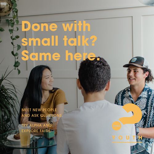 Alpha is a place to explore life, faith, God and ask some of life's biggest questions in a low-pressure atmosphere. Create connections that are deeper than just small talk.