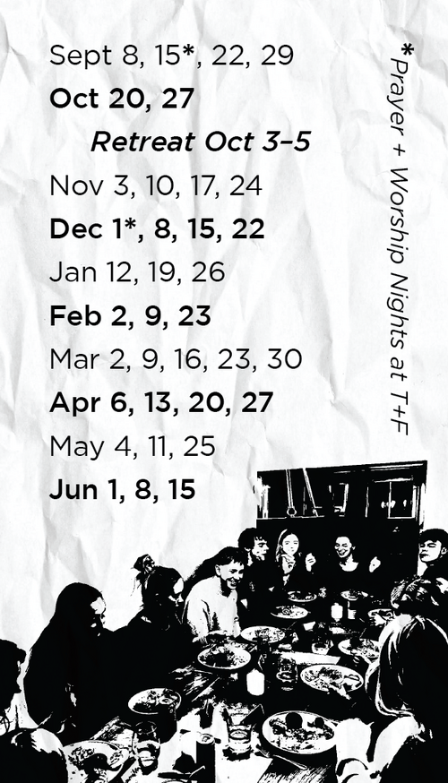 What: Young adults gathering together to study the Bible, eat a meal, pray, share God's work, and build community.